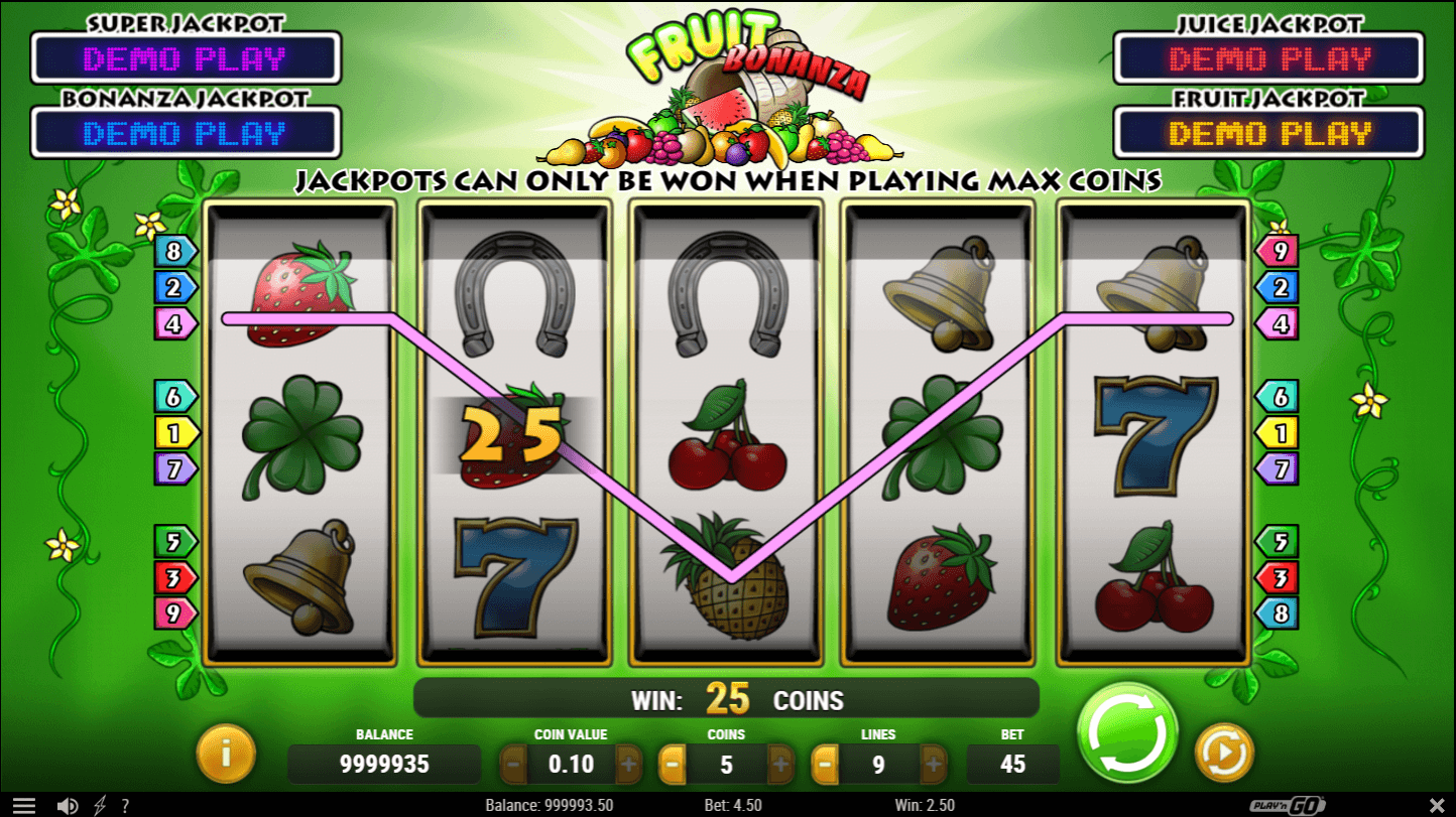 Possible number of coins to bet differs from 1 to 10 and coin price differs between 0.01 and 0.25.