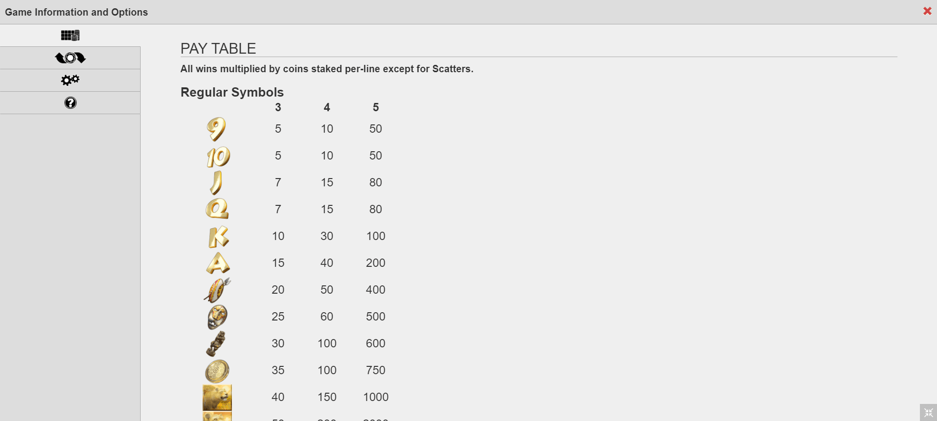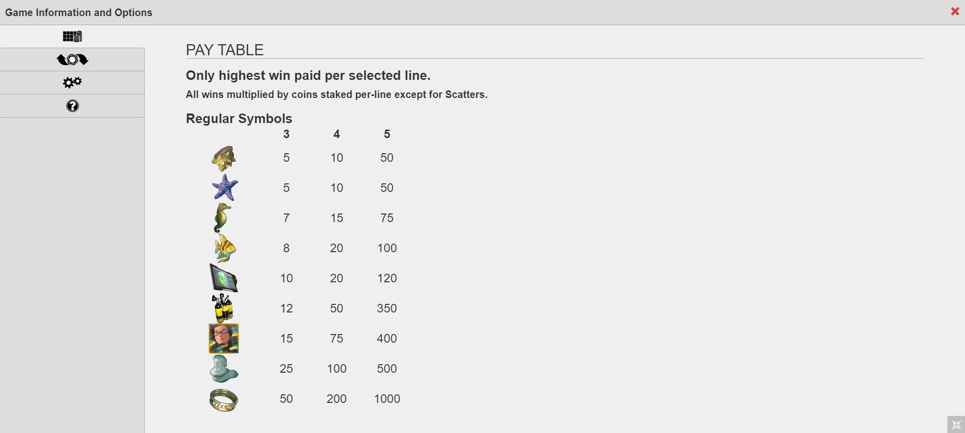 Available quantity of coins to bet varies from 1 to 2 while coin rate ranges between 0.25 and 5.