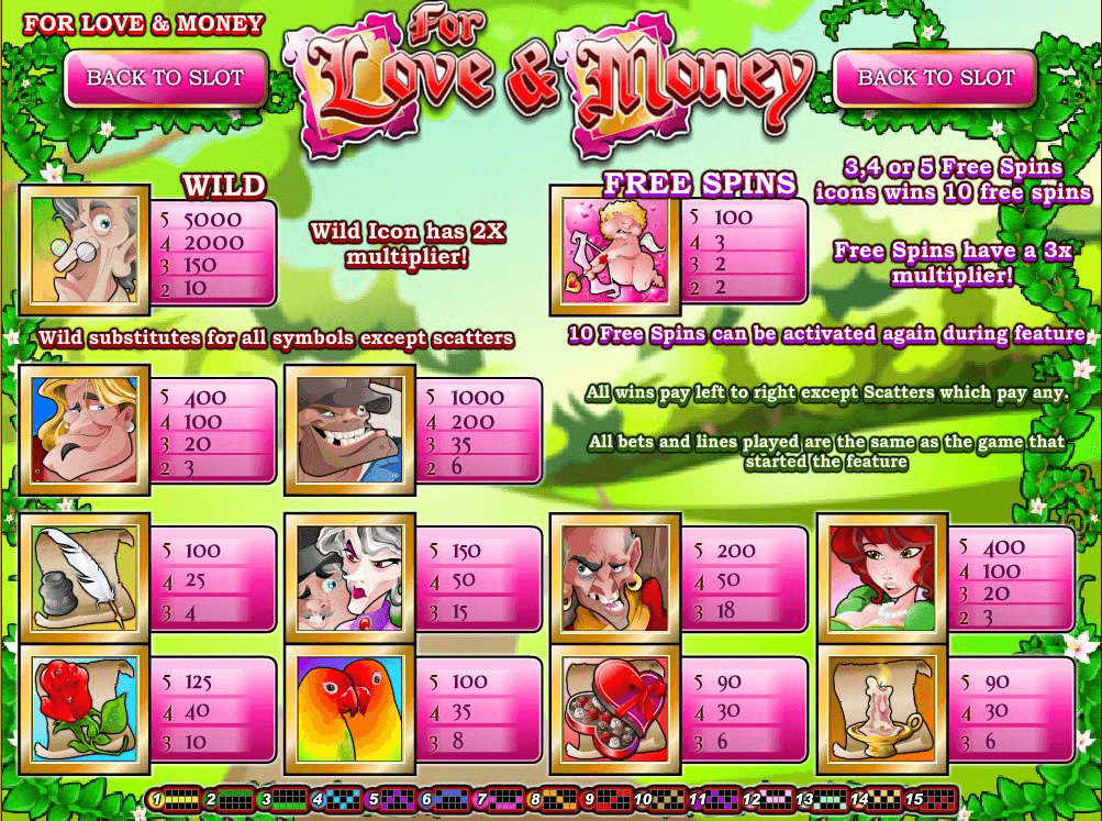 Revise explicit Love And Money slot review to comprehend more about this particular game which portrays Romance, Gold, Wild themed slots. Definitely, latter themes for players means lots of nice moments created by all aspects or actions connected to themes.