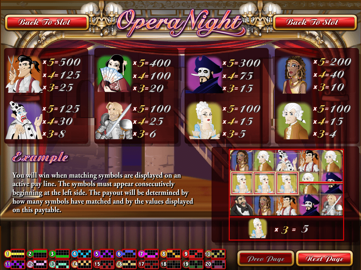 Opera Night slot has 5-reel as well as 20 pay lines video online slot, created in 2011. Certainly, game can be labeled as well-established.
