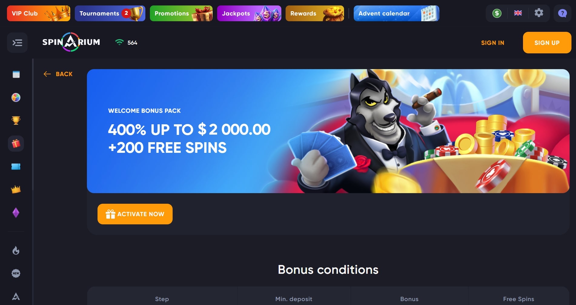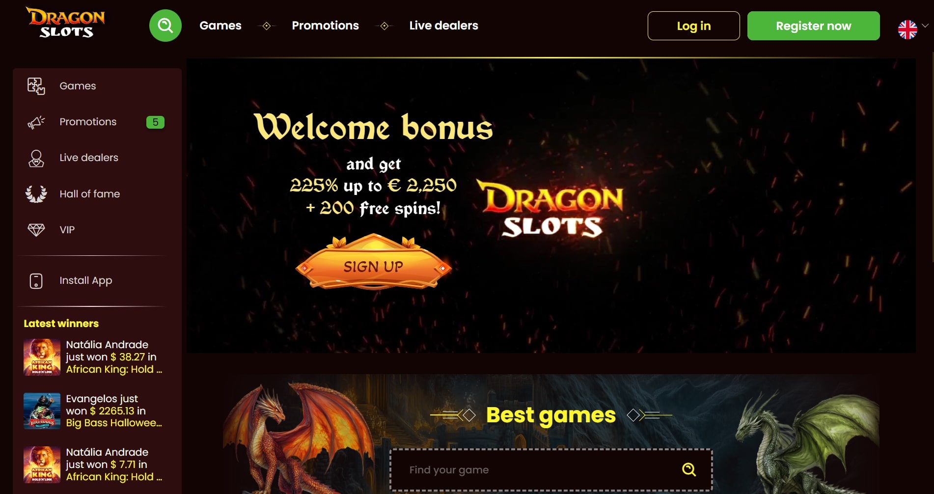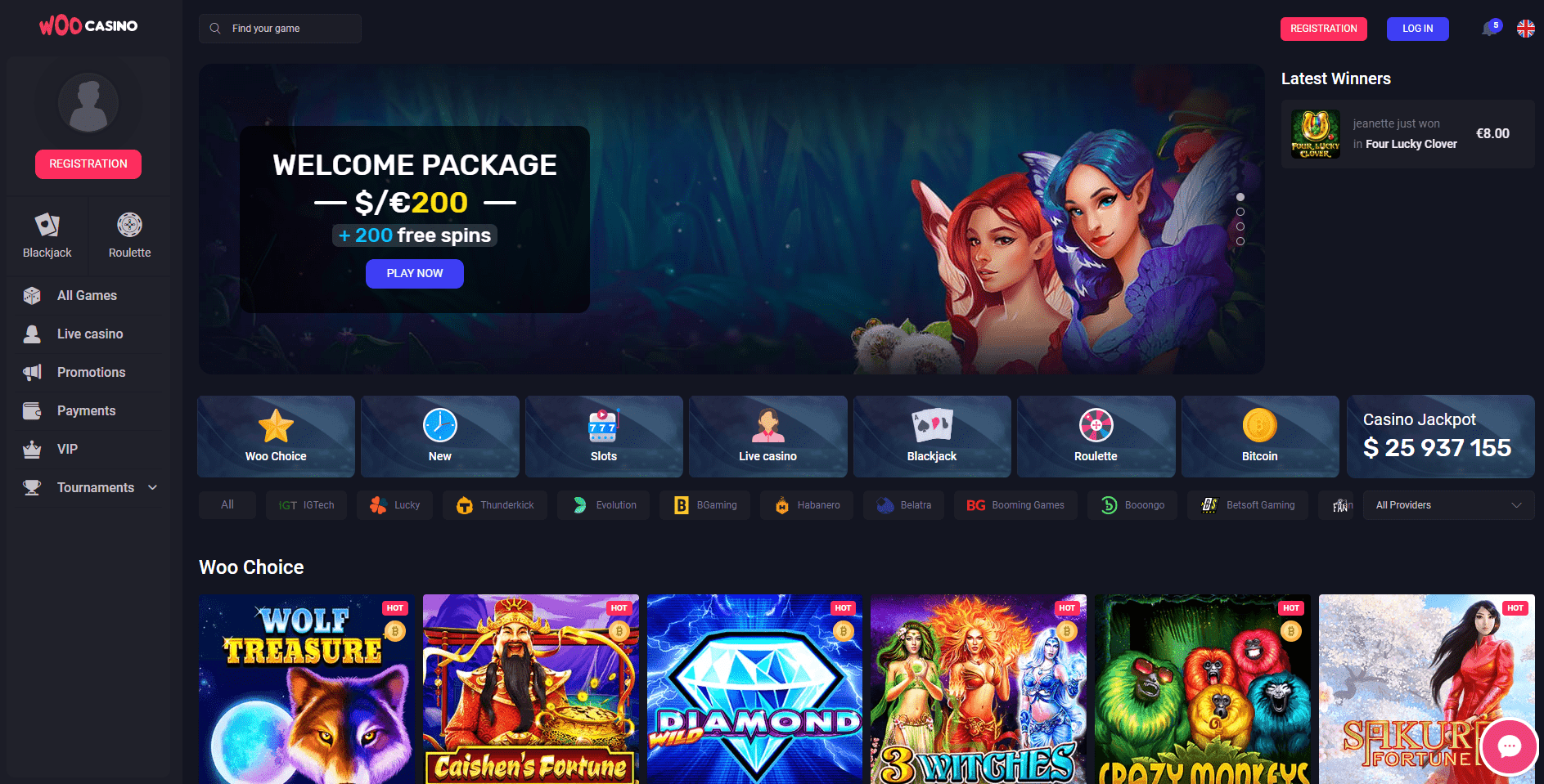 - Solid library of online slots with 4000+ titles, including progressive jackpot games