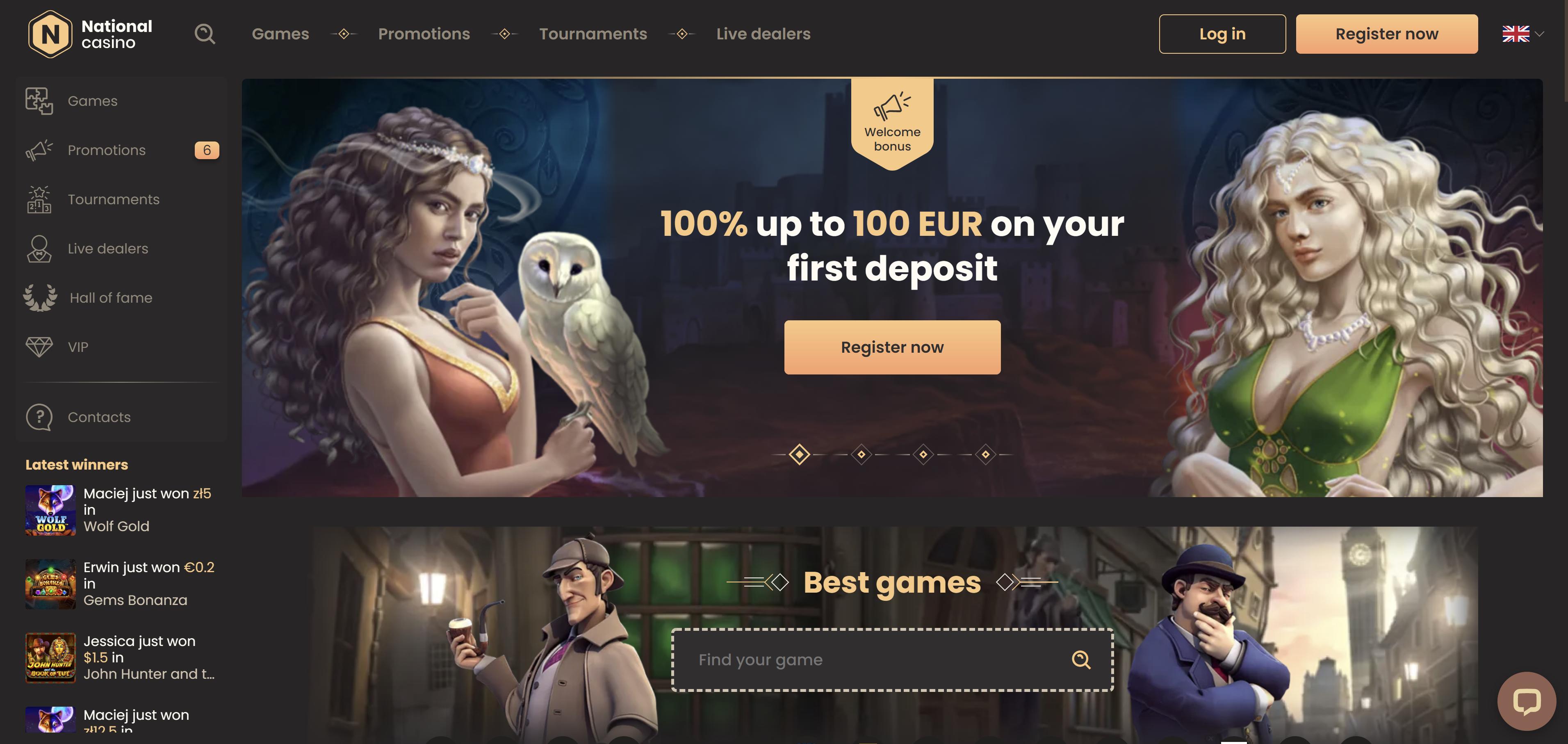 - 6000+ games (4000+ slots, 500+ live dealer tables)