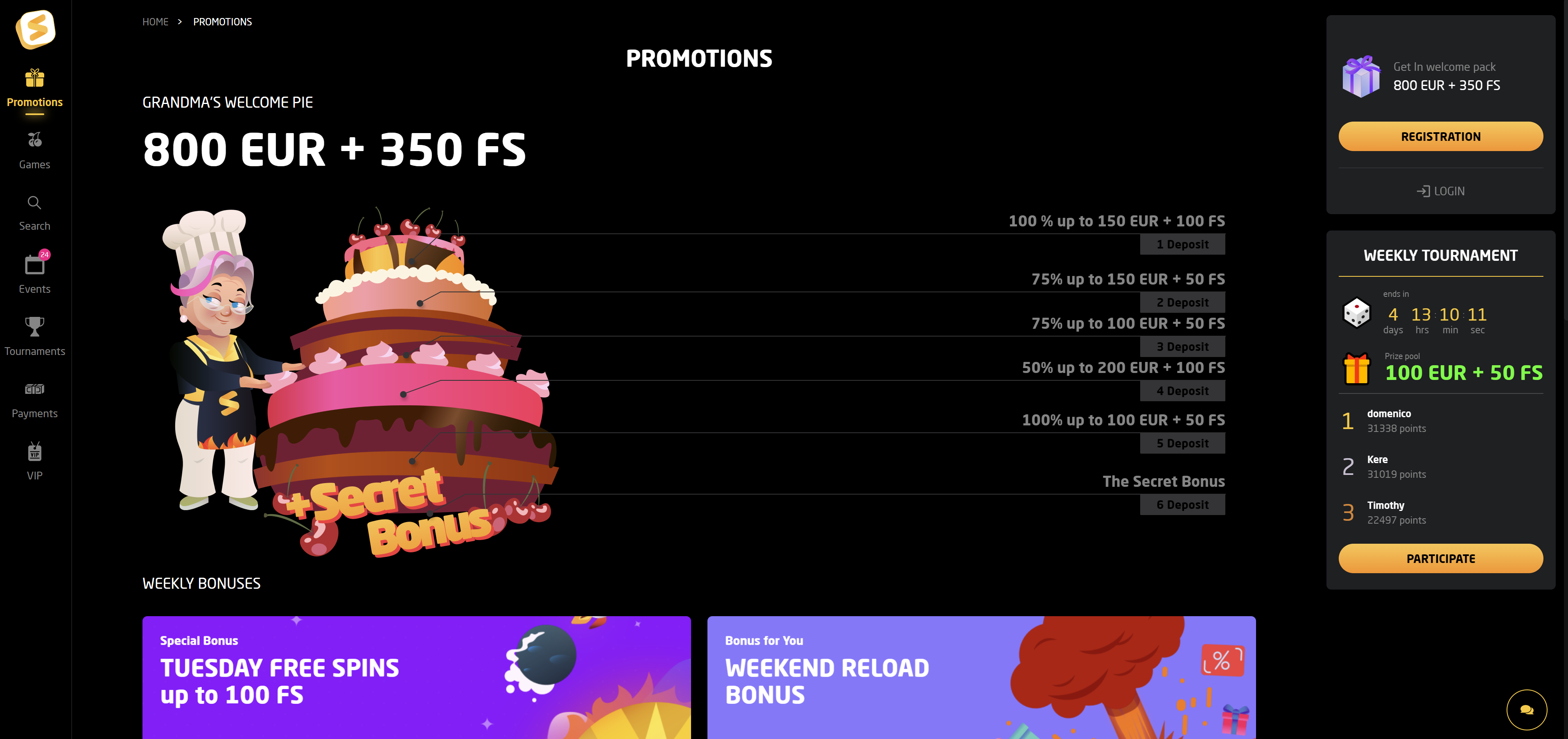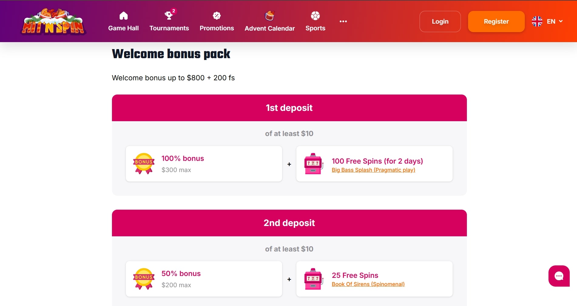- The second offer increases the bonus amount. Players receive 50% up to €900 with 50 free spins, but the code HOT must be entered before completing the deposit.