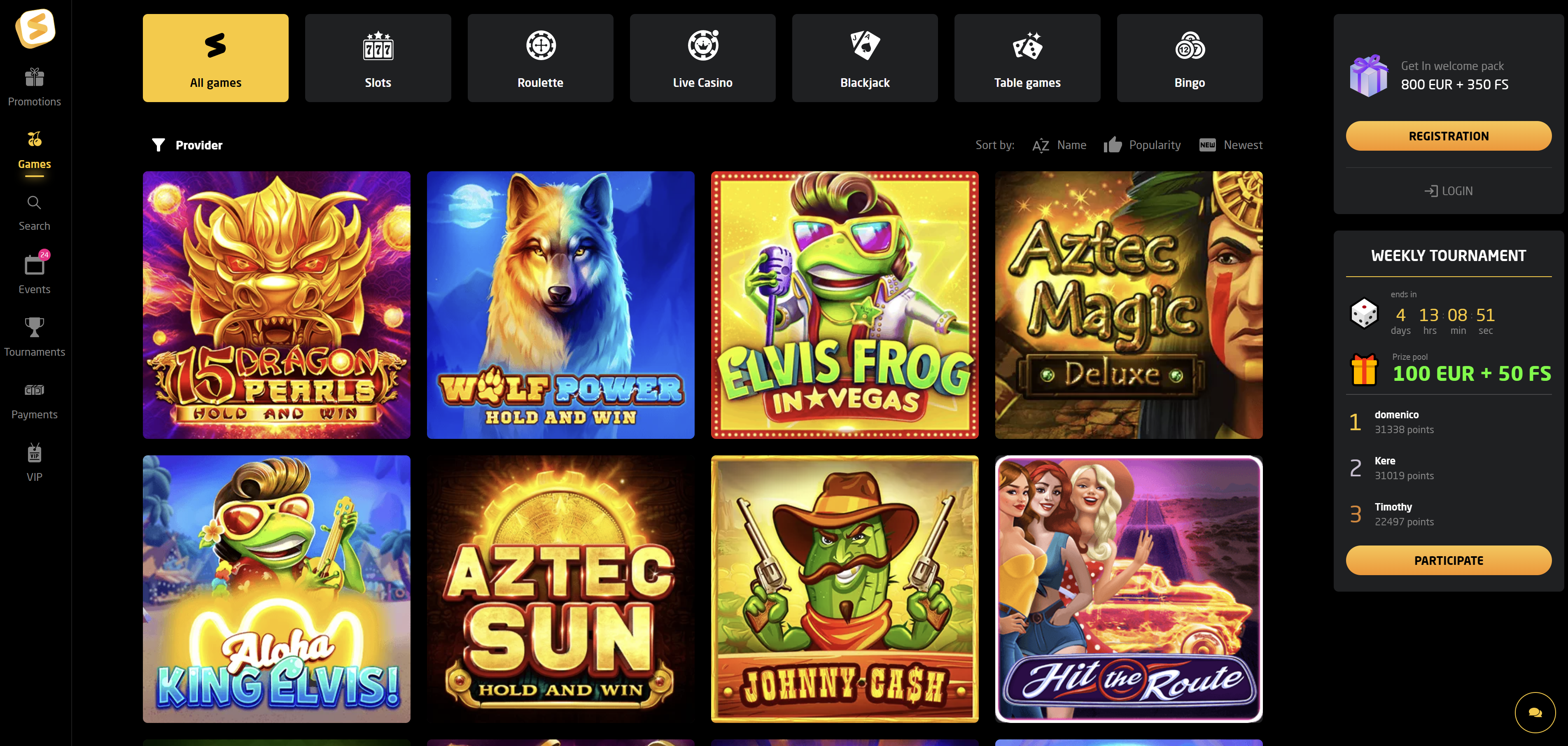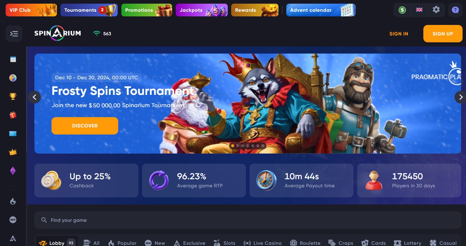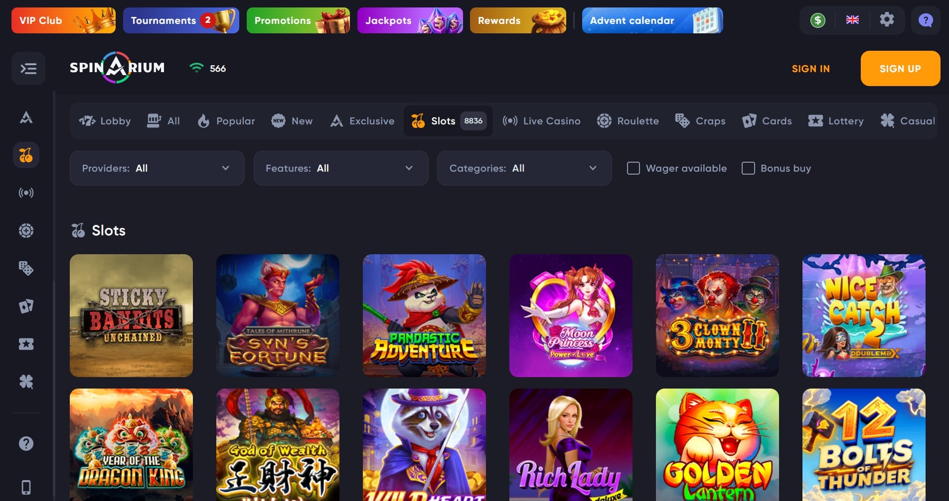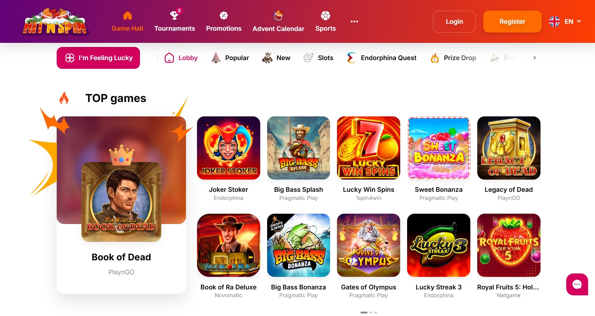 Hell Spin claims over 6,000 games. The lobby feels massive — you can scroll for a while before hitting repeat titles.