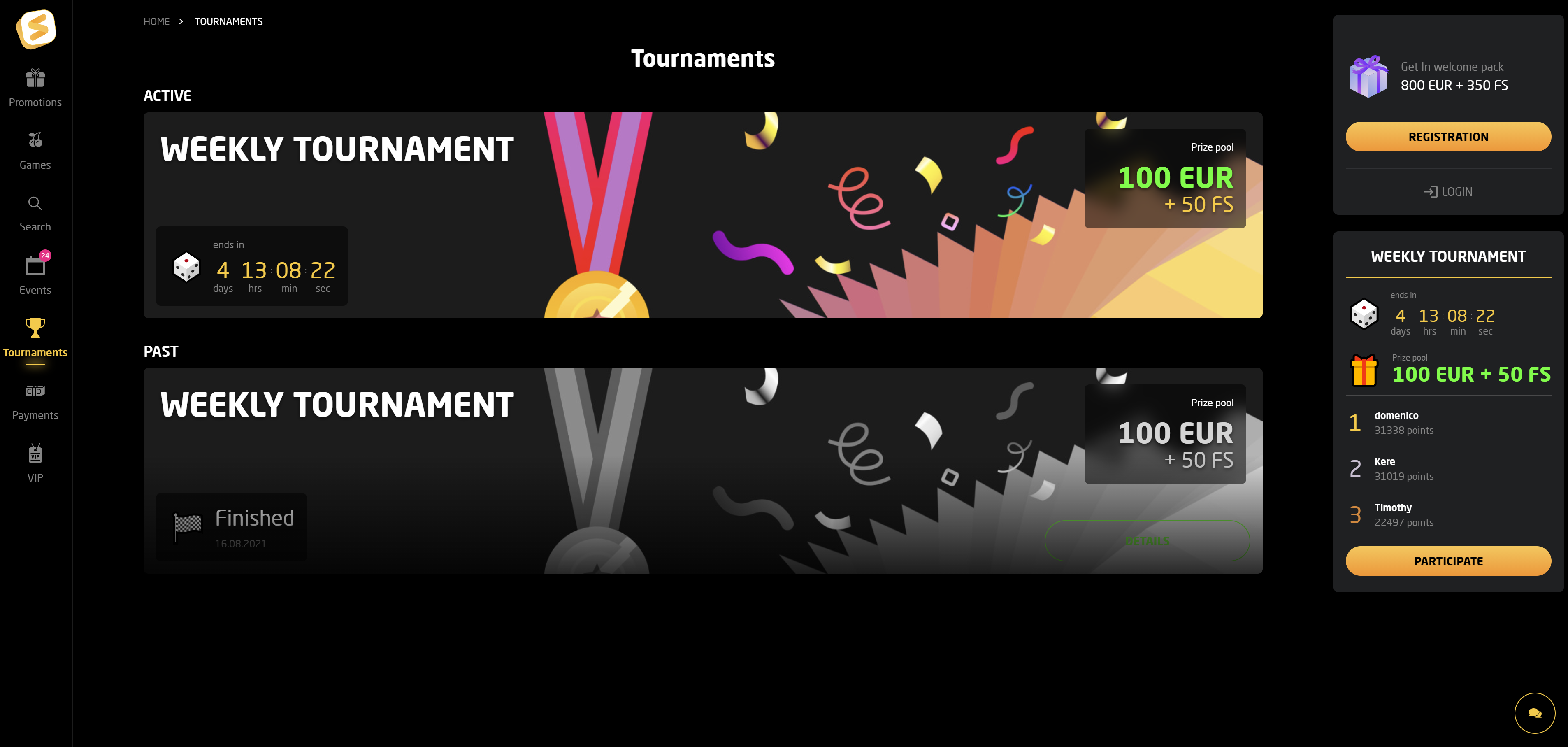 - Welcome bonus up to €1,200 + 250 free spins