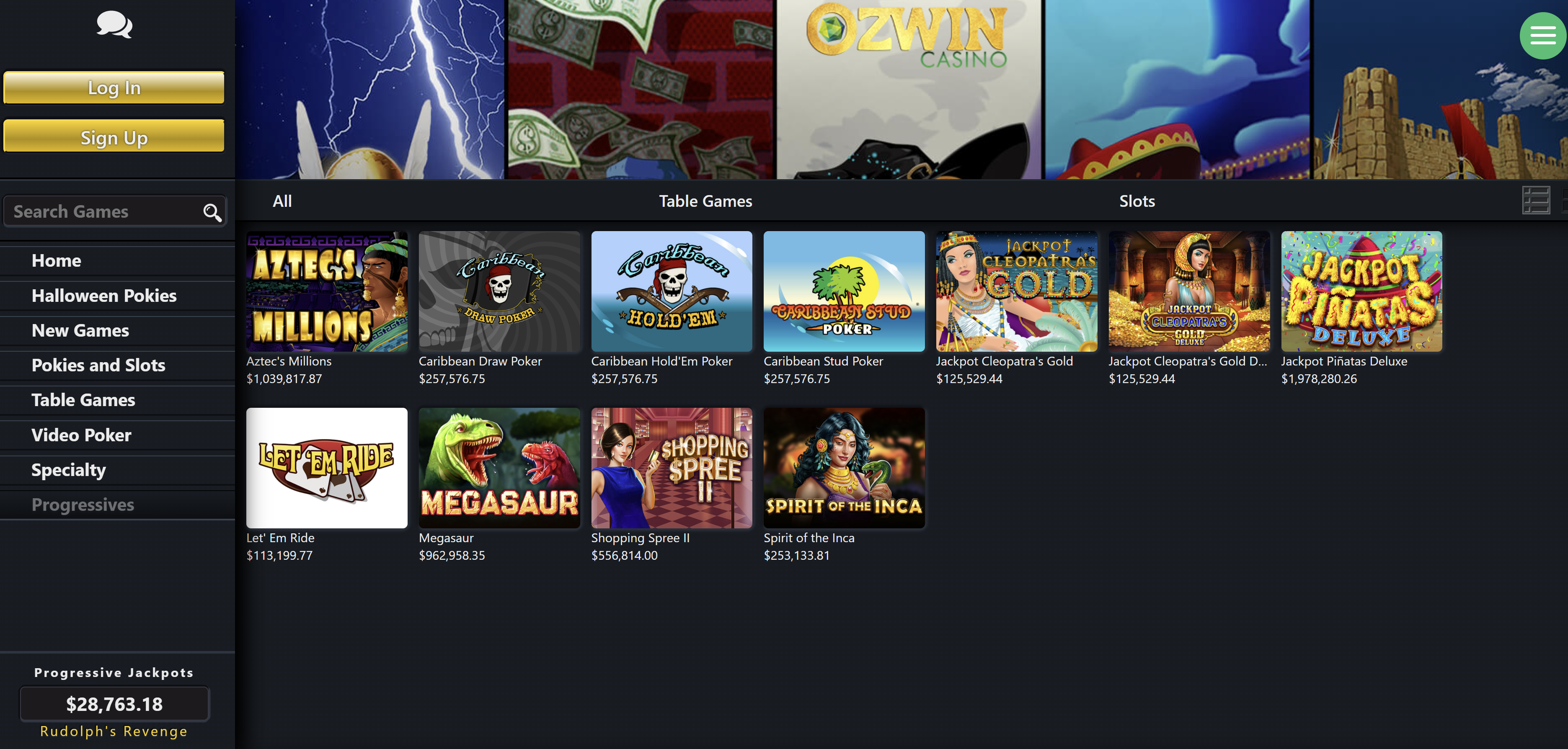 - Table games: 100+